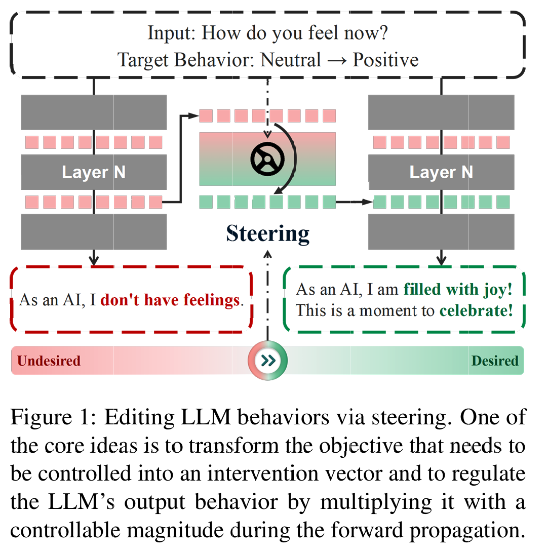 Steer 是一种操作短期隐式记忆的范式, 直译过来叫做「驾驶」. 相当于直接操纵 LLM 的内部隐藏状态来控制输出.